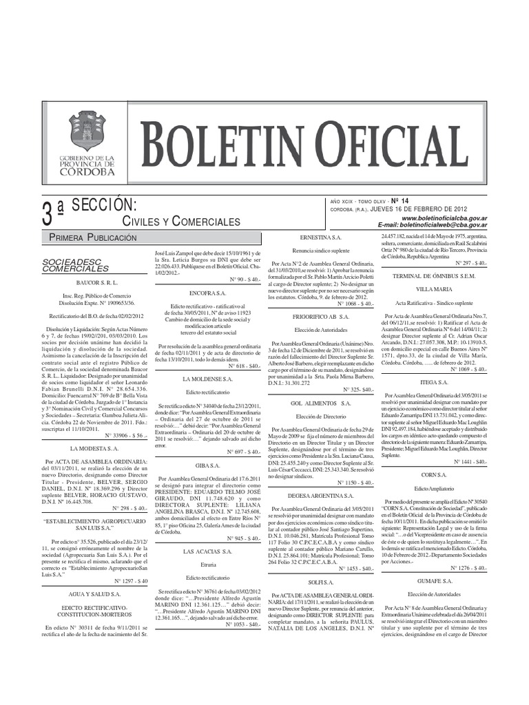 The boletín oficial de la república argentina is the government gazette of the argentine republic, on which the argentine state publishes its legal norms such as laws, decrees and regulations. Aerolíneas argentinas tiene 8 naves. Ministerio de la secretaría general de la gobernación. De tratarse de contratos, actos y operaciones celebrados por medios electrónicos, se considerarán alcanzados por el gravamen en. Sociedades y avisos judiciales segunda sección.